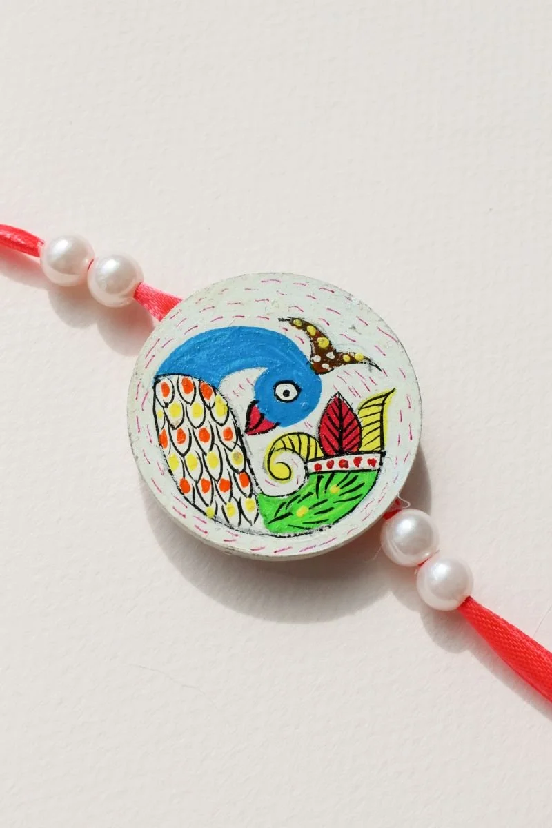 Rakhi bracelets are a signature part of the gift giving. Versatile and beautiful, our Rakhi wooden pendants are fixed onto ribbons to wear as jewelry around your wrist, a bookmark in your summer novel, or hang from your rearview mirror for good luck while driving.